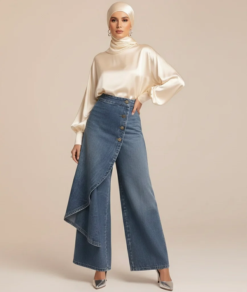 🥇Ženske traperice visokog struka i širokih nogavica, širokog kroja, elegantnog dizajna.