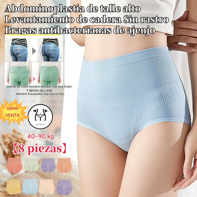 🔥 50% de descuento - 【Pack de 8】 Bragas altas de algodón para mujer con control de abdomen y efecto antibacteriano