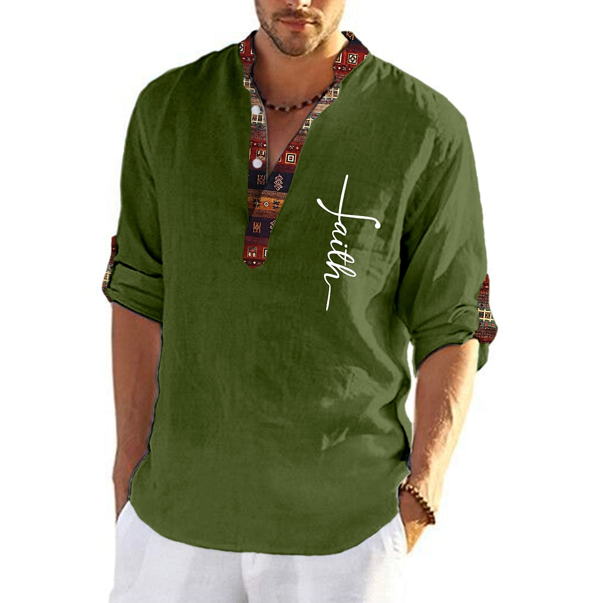 šŸ”„Vremenski ograničena akcijašŸ”„MuÅ”ka posteljina, pamučna koÅ”ulja s printom i V izrezom -3721976